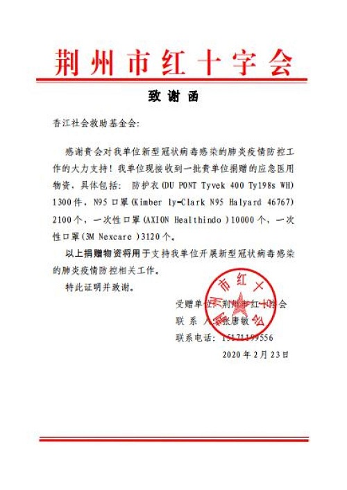 本次援助荊州抗疫醫(yī)療物資包括1300件醫(yī)用防護(hù)服、2100個N95口罩、3120個3M口罩、10000個一次性醫(yī)用口罩,該批物資也成為香江社會救助基金會抗疫期間捐贈的第四批醫(yī)療物資。